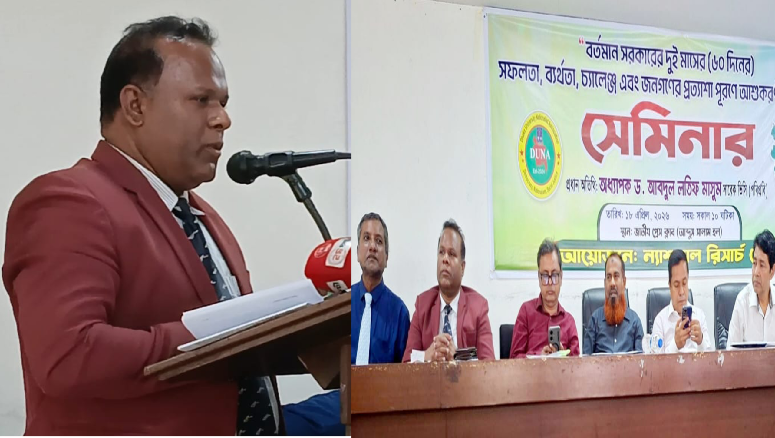 বর্তমান সরকারের ক্ষমতায় আসার দুই মাস পূর্ণতার উপলক্ষে আজ শনিবার (১৮ এপ্রিল ২০২৬) জাতীয় প্রেসক্লাবের আবদুস সালাম হলে ‘সরকারের দুই মাস: প্রত্যাশা ও প্রাপ্তি’ শিরোনামে একটি বিশেষ সেমিনার অনুষ্ঠিত হয়েছে।