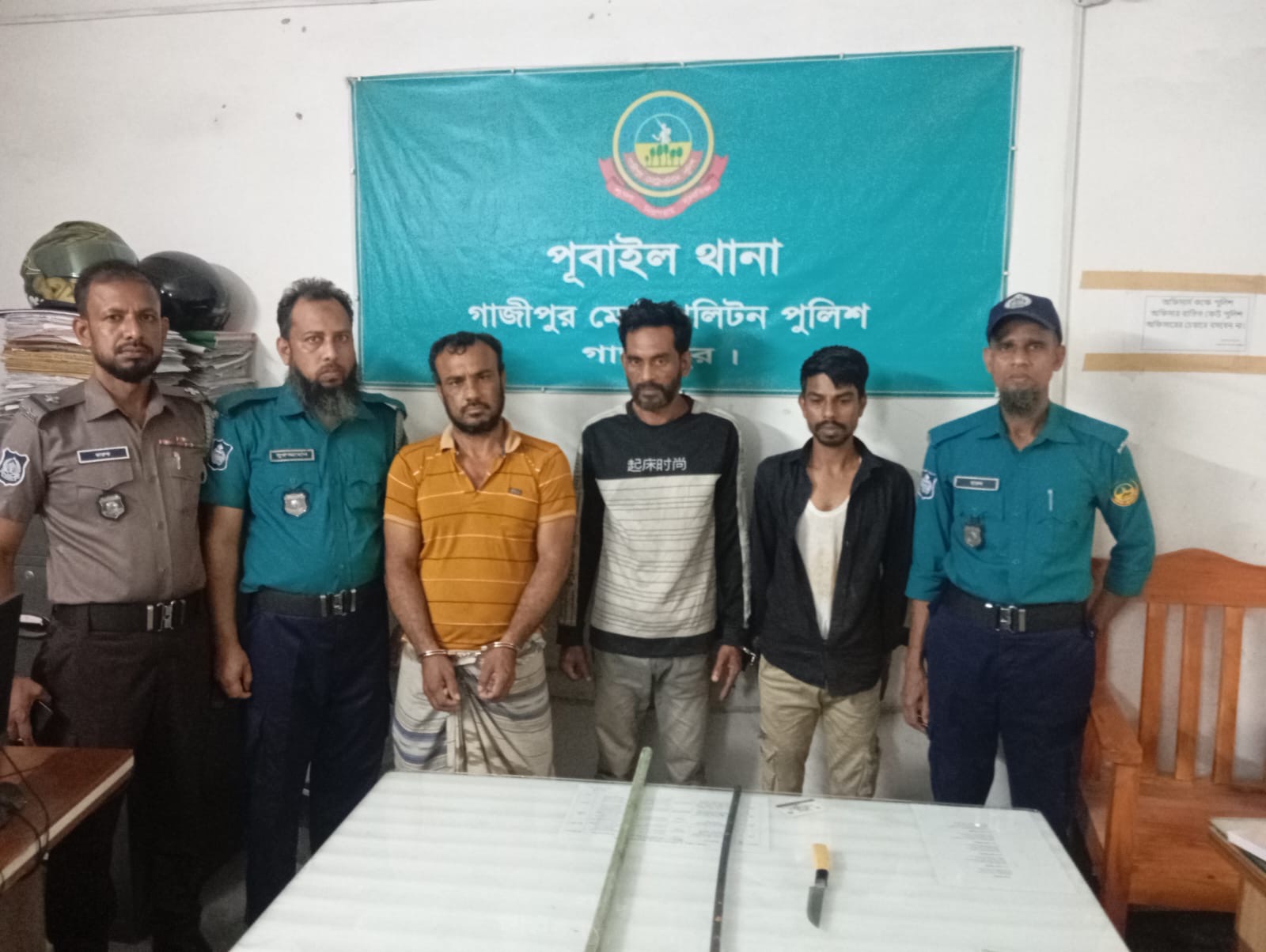 বৃহস্পতিবার গভীর রাতে গাজীপুর মহানগরীর ৪১ নং ওয়ার্ডের সাতানীপাড়া এলাকা থেকে তাদের কে ডাকাতির প্রস্তুতিকালে আটক করে পুলিশে দেওয়া হয়।